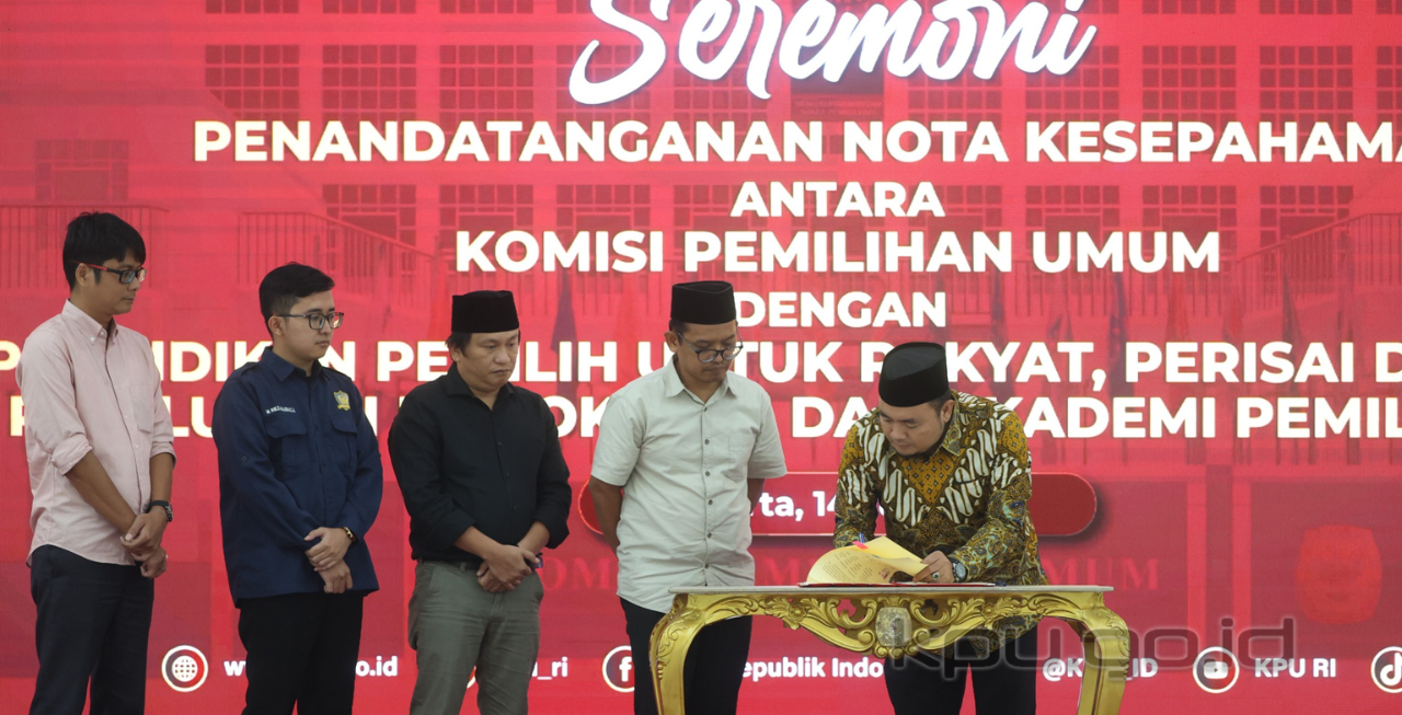 Hal ini disampaikan Ketua KPU Mochammad Afifuddin saat hadir bersama Anggota KPU Yulianto Sudrajat dan Iffa Rosita dalam penandatanganan Nota Kesepahaman (MoU) dengan empat Lembaga Swadaya Masyarakat (LSM); Jaringan Pendidikan Pemilih untuk Rakyat (JPPR), Perisai Demokrasi Bangsa (PDB), Sindikasi Pemilu dan Demokrasi (SPD), serta Akademi Pemilu dan Demokrasi (APD) di Ruang Sidang Utama Lantai II KPU, Senin (14/7/2025).